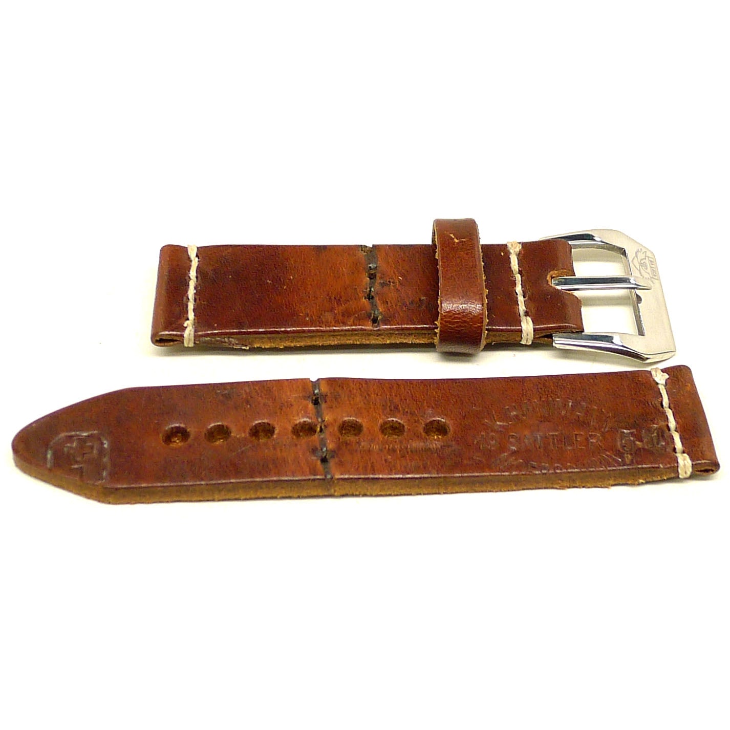 • Description: This one of a kind, individually named watch strap is handmade from some of the rarest and most sought-after vintage Swiss ammunition pouches available, that date back from the early 1900s to the late 1960s. We pair this ultra-tough military grade leather with a finely finished stainless steel buckle to create an exceptional quality watch strap that is guaranteed to enhance your watch as well as be a statement piece for your wrist. Every nuanced detail, hole, crease mark, scratch, stitching line or stamp is purposefully presented as each watch strap is truly a one of a kind limited edition masterpiece. We hand stitch every strap using the strongest wax linen thread for added durability, use precise finishing techniques and give meticulous attention to detail so each strap is built to last using only the finest materials available. Enhance your watch with this luxurious handmade vintage leather watch strap, it will give years of all-day comfort and style.