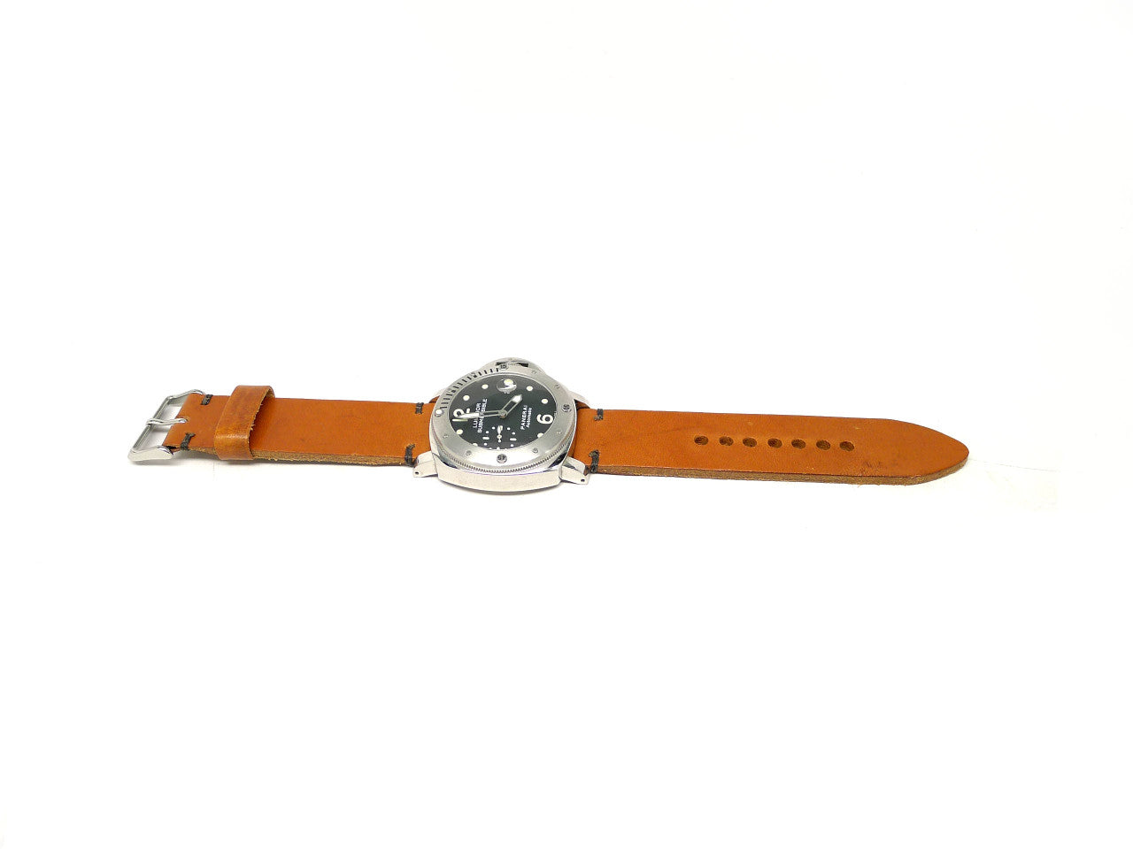 • Description: This one of a kind, individually named watch strap is handmade from some of the rarest and most sought-after vintage Swiss ammunition pouches available, that date back from the early 1900s to the late 1960s. We pair this ultra-tough military grade leather with a finely finished stainless steel buckle to create an exceptional quality watch strap that is guaranteed to enhance your watch as well as be a statement piece for your wrist. Every nuanced detail, hole, crease mark, scratch, stitching line or stamp is purposefully presented as each watch strap is truly a one of a kind limited edition masterpiece. We hand stitch every strap using the strongest wax linen thread for added durability, use precise finishing techniques and give meticulous attention to detail so each strap is built to last using only the finest materials available. Enhance your watch with this luxurious handmade vintage leather watch strap, it will give years of all-day comfort and style.