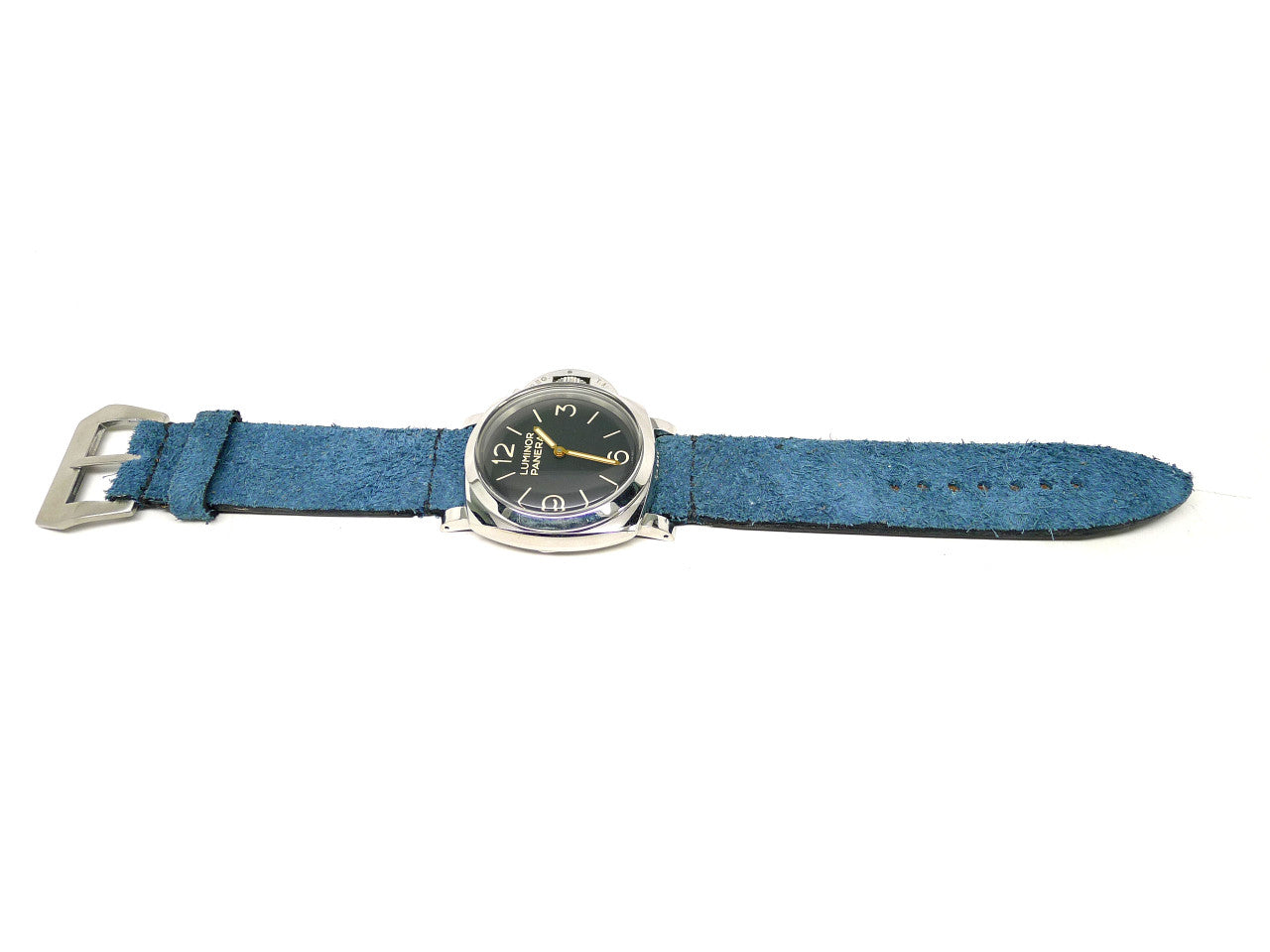 • Description: This one of a kind, individually named watch strap is handmade from some of the finest genuine blue suede leather available and is paired with a finely finished stainless steel buckle, that is guaranteed to enhance your watch. We hand stitch every strap using the strongest wax linen thread for added durability, use precise finishing techniques and give meticulous attention to detail so each strap is built to last using only the finest materials available. Enhance your watch with this luxurious handmade leather suede watch strap, it will give years of all-day comfort and style.