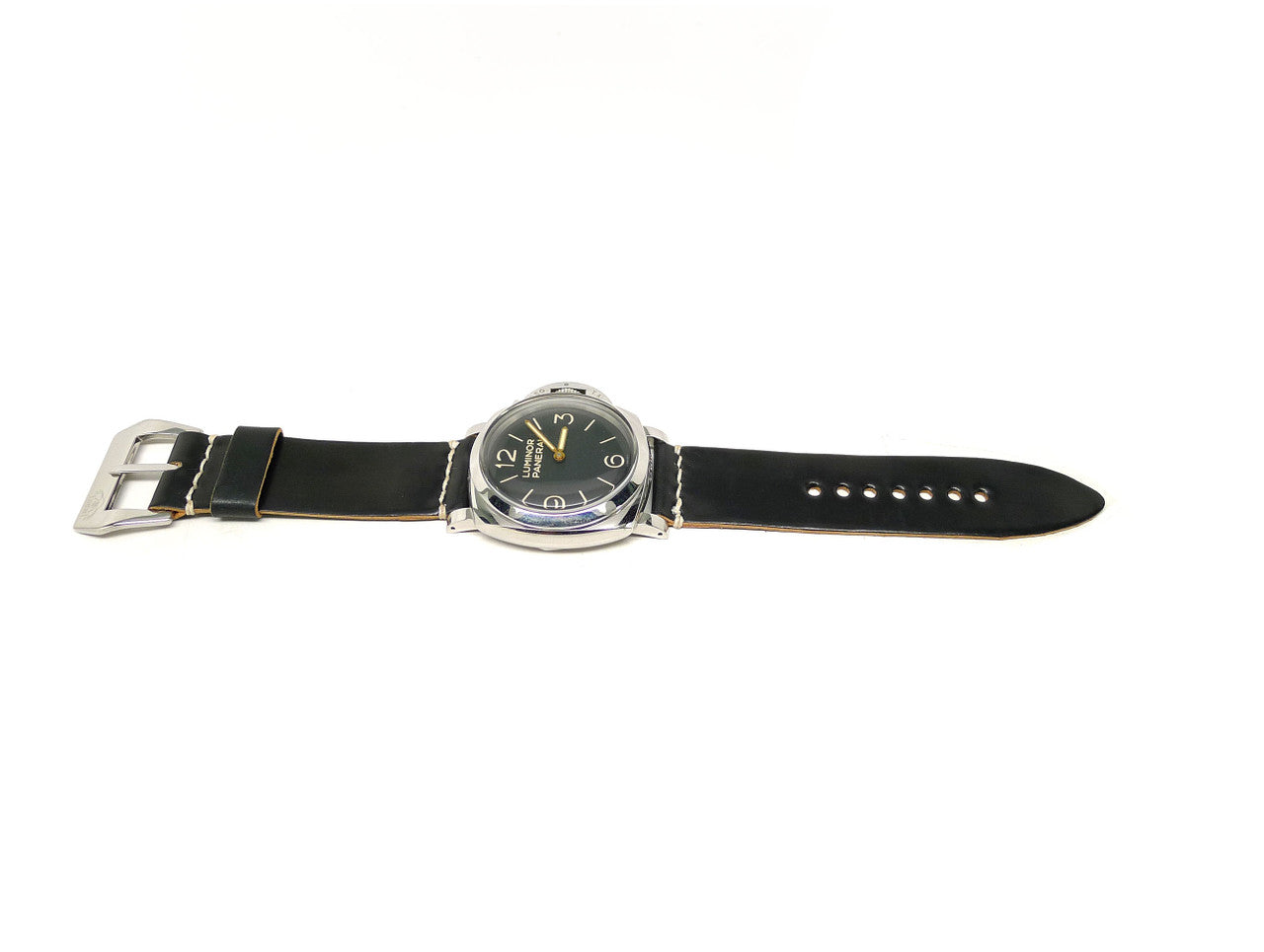 • Description: This one of a kind, individually named watch strap is handmade from genuine Black Horween Shell Cordovan leather and is paired with a finely finished stainless steel buckle, that is guaranteed to enhance your watch. Shell Cordovan is the art of tanning at its finest, taking irregular oval shaped shells and tanning, stuffing, shaving, then polishing – a process taking at least six months to complete at the world famous Horween tannery in Chicago, IL. This intense process gives the leather its unique properties that make it like no other. The results yield some of the finest leather known to man. You simply cannot find better leather! That same care, quality and attention to detail is clear throughout each strap as we mirror their attention to detail in each watch strap we produce. We hand stitch every strap using the strongest wax linen thread for added durability, use precise finishing techniques and give meticulous attention to detail so each strap is built to last using only the finest materials available. Enhance your watch with this luxurious shell cordovan leather watch strap, it will give years of all-day comfort and style.