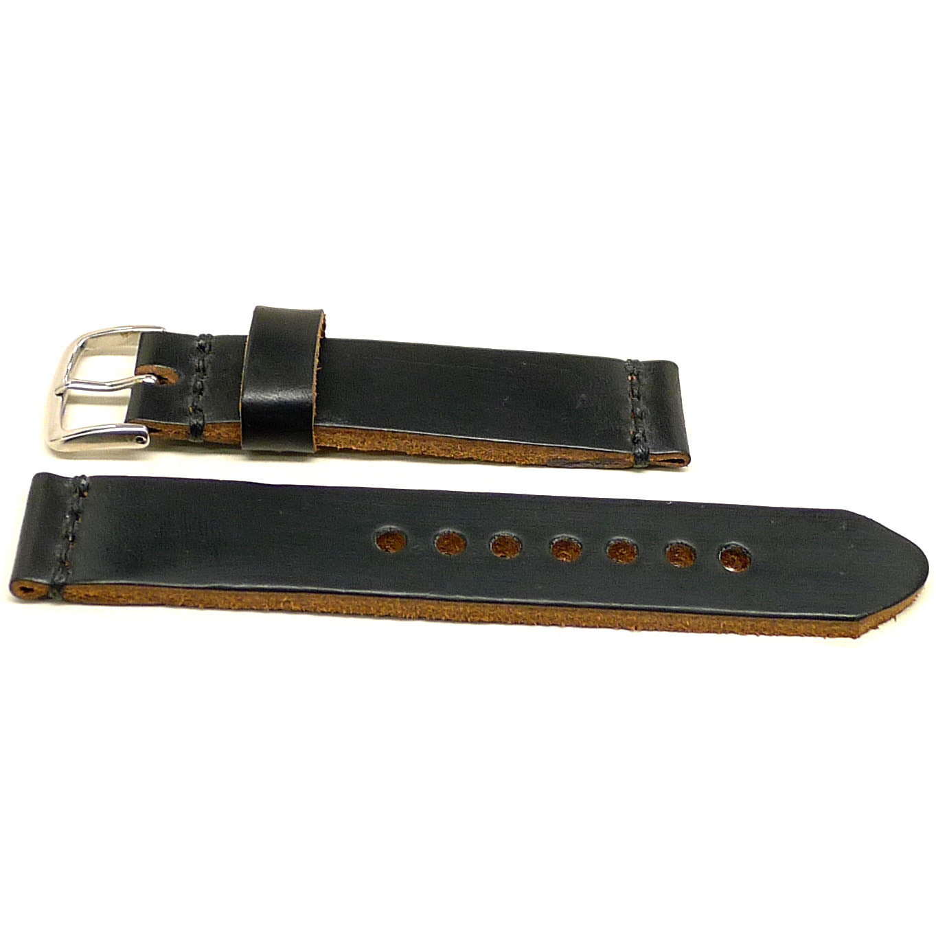 • Description: This one of a kind, individually named watch strap is handmade from some of the finest genuine Horween Chromexcel leather available and is paired with a finely finished stainless steel buckle, that is guaranteed to enhance your watch. Horween Chromexcel leather is a combination tanned leather that undergoes at least 89 separate processes taking 28 working days to produce at the world famous Horween tannery in Chicago, IL. That same care, quality and attention to detail is clear throughout each strap as we mirror their attention to detail in each watch strap we produce. We hand stitch every strap using the strongest wax linen thread for added durability, use precise finishing techniques and give meticulous attention to detail so each strap is built to last using only the finest materials available. Enhance your watch with this luxurious handmade leather watch strap, it will give years of all-day comfort and style.