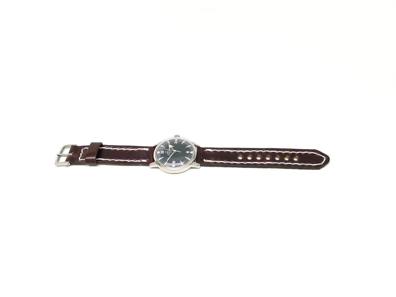 • Description: This one of a kind, individually named watch strap is handmade from genuine Color 8 Horween Shell Cordovan leather and is paired with a finely finished stainless steel buckle, that is guaranteed to enhance your watch. Shell Cordovan is the art of tanning at its finest, taking irregular oval shaped shells and tanning, stuffing, shaving, then polishing – a process taking at least six months to complete at the world famous Horween tannery in Chicago, IL. This intense process gives the leather its unique properties that make it like no other. The results yield some of the finest leather known to man. You simply cannot find better leather! That same care, quality and attention to detail is clear throughout each strap as we mirror their attention to detail in each watch strap we produce. We hand stitch every strap using the strongest wax linen thread for added durability, use precise finishing techniques and give meticulous attention to detail so each strap is built to last using only the finest materials available. Enhance your watch with this luxurious shell cordovan leather watch strap, it will give years of all-day comfort and style.