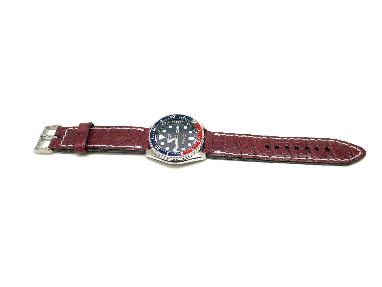 • Description: This one of a kind, individually named watch strap is handmade from some of the finest genuine alligator skins available and is paired with a finely finished stainless steel buckle, that is guaranteed to enhance your watch. We hand stitch every strap using the strongest wax linen thread for added durability, use precise finishing techniques and give meticulous attention to detail so each strap is built to last using only the finest materials available. Enhance your watch with this luxurious handmade alligator watch strap, it will give years of all-day comfort and style.