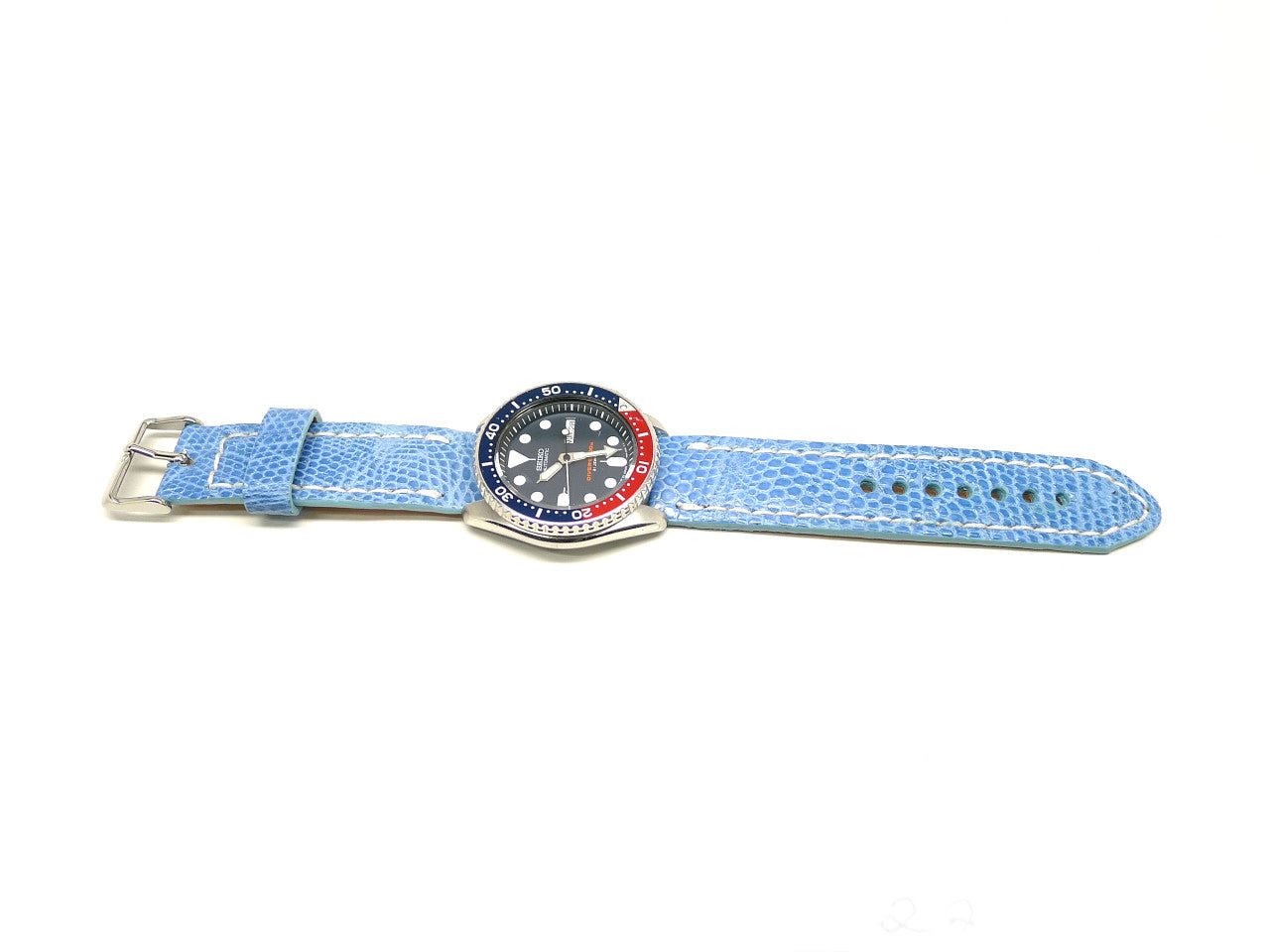 • Description: This one of a kind, individually named watch strap is handmade from some of the finest genuine lizard skins available and is paired with a finely finished stainless steel buckle, that is guaranteed to enhance your watch. We hand stitch every strap using the strongest wax linen thread for added durability, use precise finishing techniques and give meticulous attention to detail so each strap is built to last using only the finest materials available. Enhance your watch with this luxurious handmade lizard watch strap, it will give years of all-day comfort and style.
