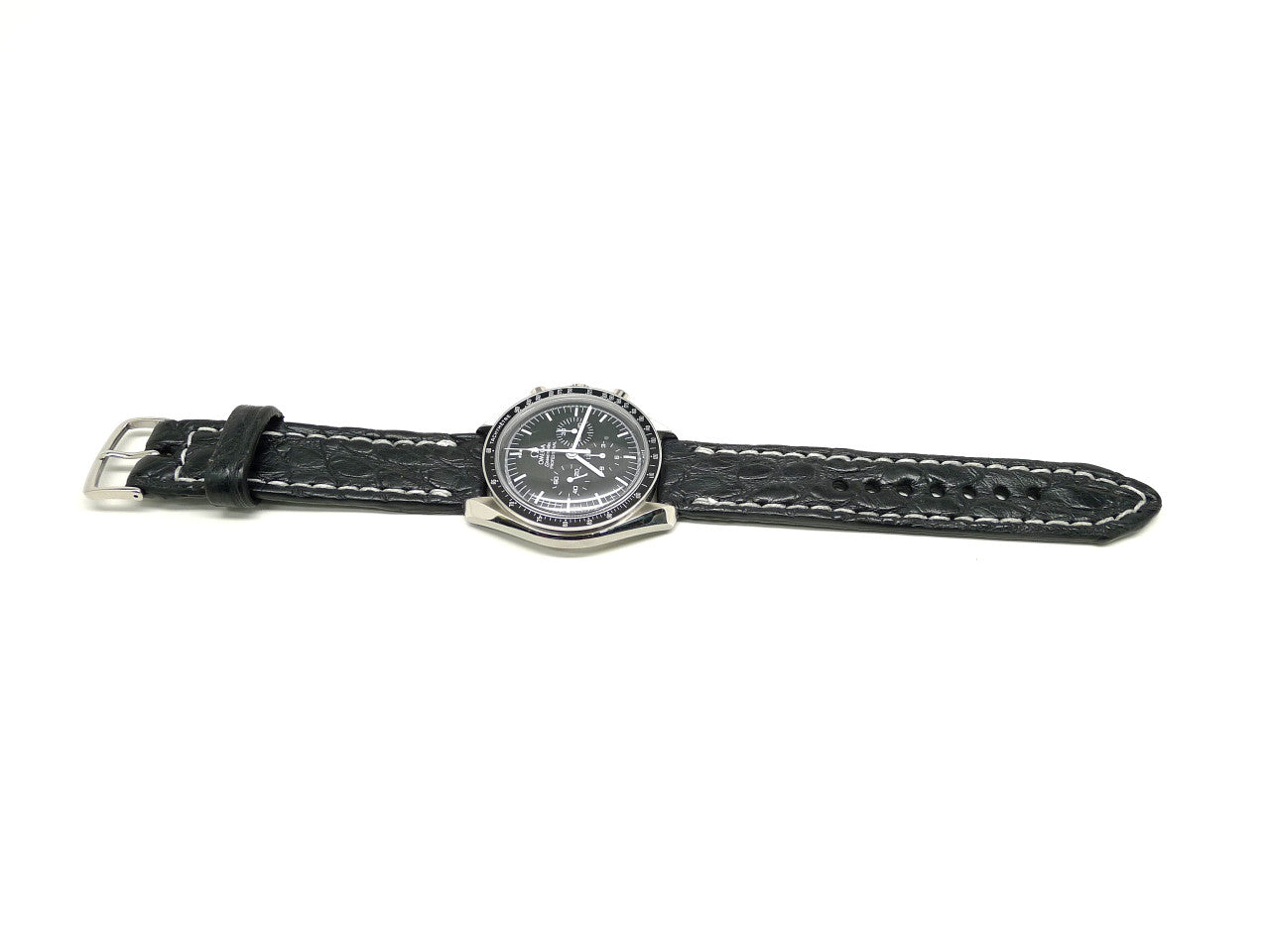 • Description: This one of a kind, individually named watch strap is handmade from some of the finest genuine alligator skins available and is paired with a finely finished stainless steel buckle, that is guaranteed to enhance your watch. We hand stitch every strap using the strongest wax linen thread for added durability, use precise finishing techniques and give meticulous attention to detail so each strap is built to last using only the finest materials available. Enhance your watch with this luxurious handmade alligator watch strap, it will give years of all-day comfort and style.