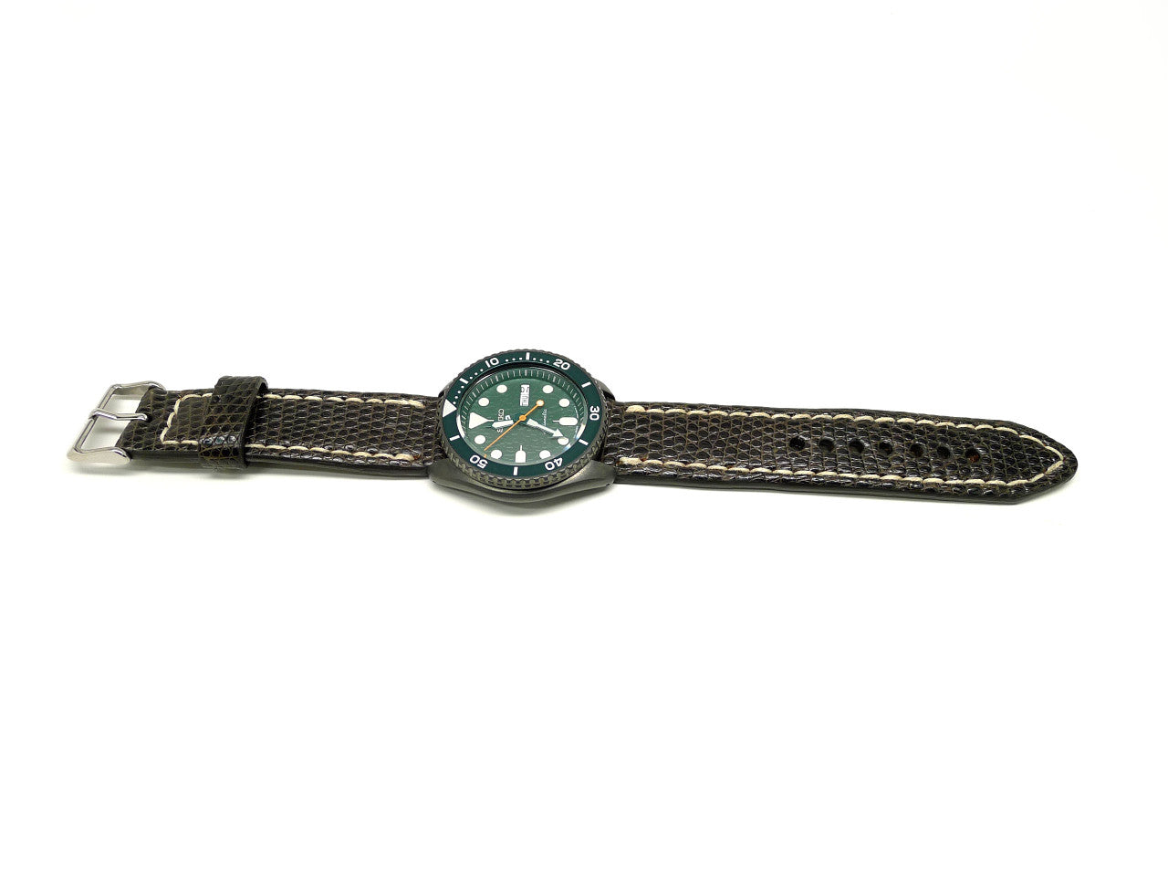 • Description: This one of a kind, individually named watch strap is handmade from some of the finest genuine lizard skins available and is paired with a finely finished stainless steel buckle, that is guaranteed to enhance your watch. We hand stitch every strap using the strongest wax linen thread for added durability, use precise finishing techniques and give meticulous attention to detail so each strap is built to last using only the finest materials available. Enhance your watch with this luxurious handmade lizard watch strap, it will give years of all-day comfort and style.