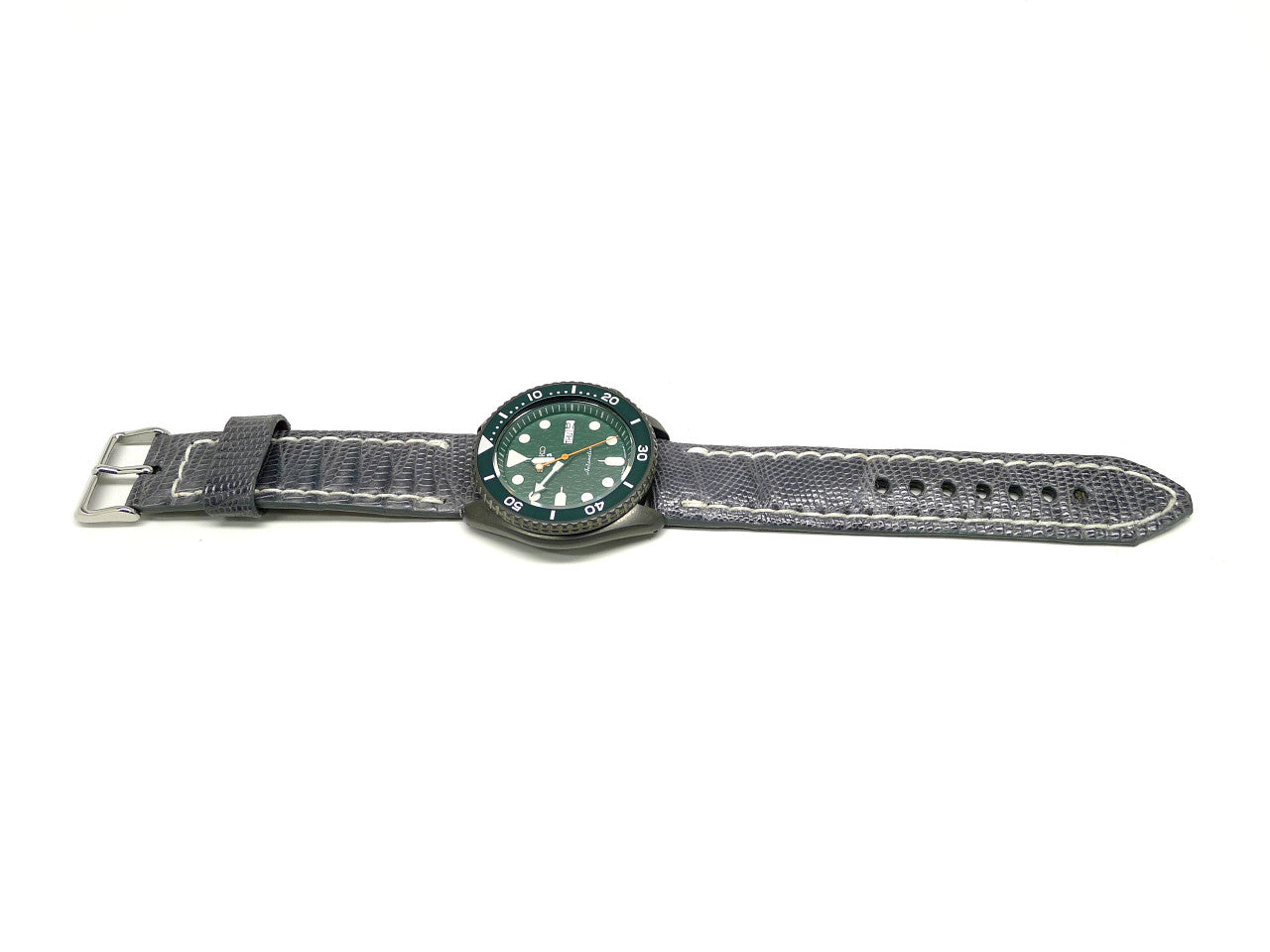 • Description: This one of a kind, individually named watch strap is handmade from some of the finest genuine lizard skins available and is paired with a finely finished stainless steel buckle, that is guaranteed to enhance your watch. We hand stitch every strap using the strongest wax linen thread for added durability, use precise finishing techniques and give meticulous attention to detail so each strap is built to last using only the finest materials available. Enhance your watch with this luxurious handmade lizard watch strap, it will give years of all-day comfort and style.