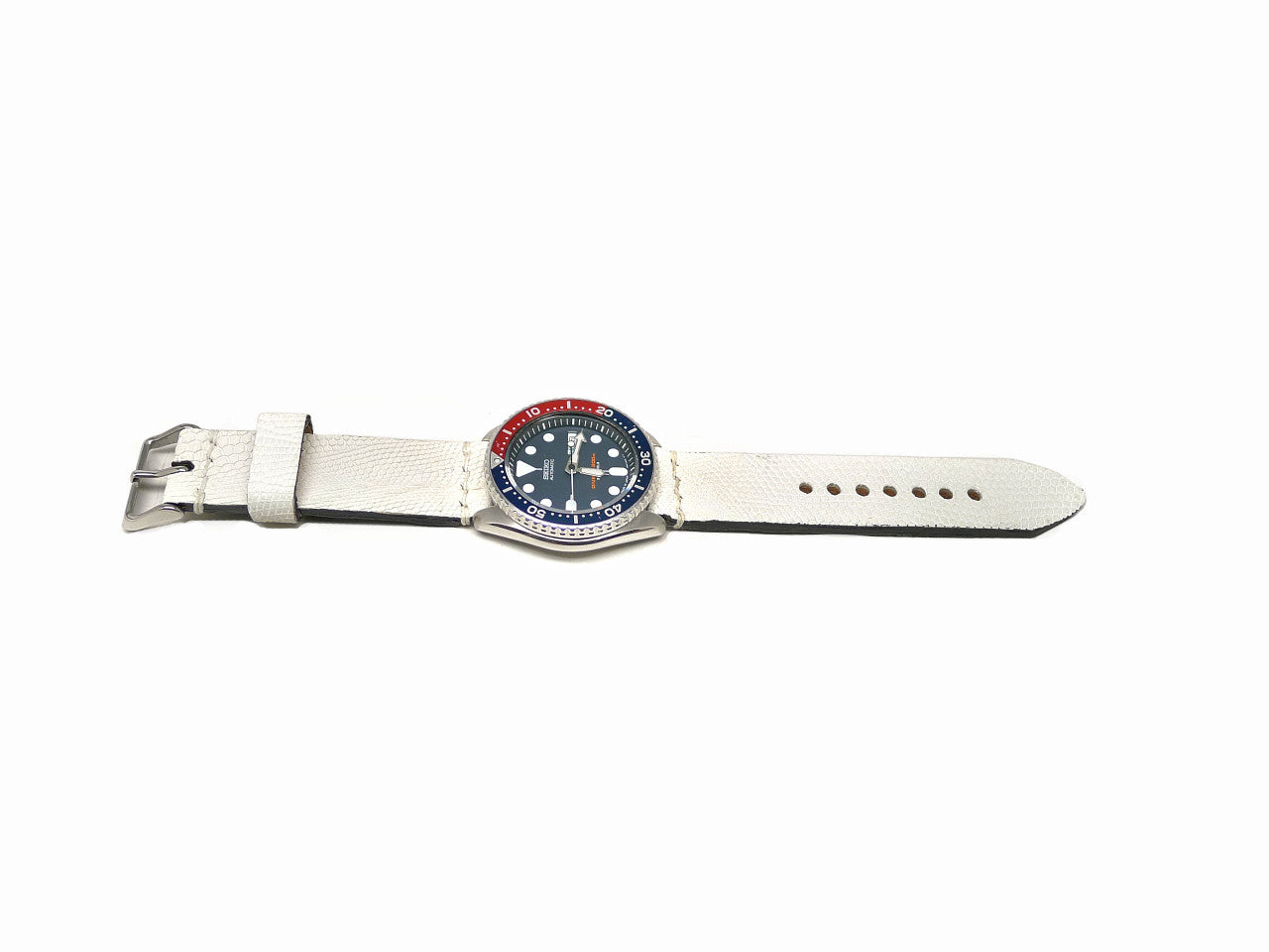 • Description: This one of a kind, individually named watch strap is handmade from some of the finest genuine lizard skins available and is paired with a finely finished stainless steel buckle, that is guaranteed to enhance your watch. We hand stitch every strap using the strongest wax linen thread for added durability, use precise finishing techniques and give meticulous attention to detail so each strap is built to last using only the finest materials available. Enhance your watch with this luxurious handmade lizard watch strap, it will give years of all-day comfort and style.