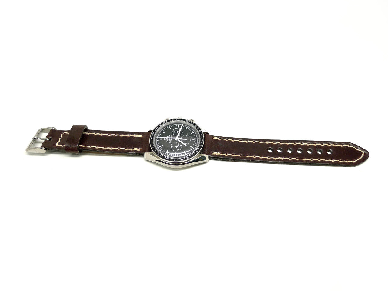 • Description: This one of a kind, individually named watch strap is handmade from genuine Color 8 Horween Shell Cordovan leather and is paired with a finely finished stainless steel buckle, that is guaranteed to enhance your watch. Shell Cordovan is the art of tanning at its finest, taking irregular oval shaped shells and tanning, stuffing, shaving, then polishing – a process taking at least six months to complete at the world famous Horween tannery in Chicago, IL. This intense process gives the leather its unique properties that make it like no other. The results yield some of the finest leather known to man. You simply cannot find better leather! That same care, quality and attention to detail is clear throughout each strap as we mirror their attention to detail in each watch strap we produce. We hand stitch every strap using the strongest wax linen thread for added durability, use precise finishing techniques and give meticulous attention to detail so each strap is built to last using only the finest materials available. Enhance your watch with this luxurious shell cordovan leather watch strap, it will give years of all-day comfort and style.