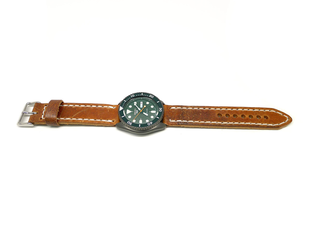 • Description: This one of a kind, individually named watch strap is handmade from some of the rarest and most sought-after vintage Swiss ammunition pouches available, that date back from the early 1900s to the late 1960s. We pair this ultra-tough military grade leather with a finely finished stainless steel buckle to create an exceptional quality watch strap that is guaranteed to enhance your watch as well as be a statement piece for your wrist. Every nuanced detail, hole, crease mark, scratch, stitching line or stamp is purposefully presented as each watch strap is truly a one of a kind limited edition masterpiece. We hand stitch every strap using the strongest wax linen thread for added durability, use precise finishing techniques and give meticulous attention to detail so each strap is built to last using only the finest materials available. Enhance your watch with this luxurious handmade vintage leather watch strap, it will give years of all-day comfort and style.