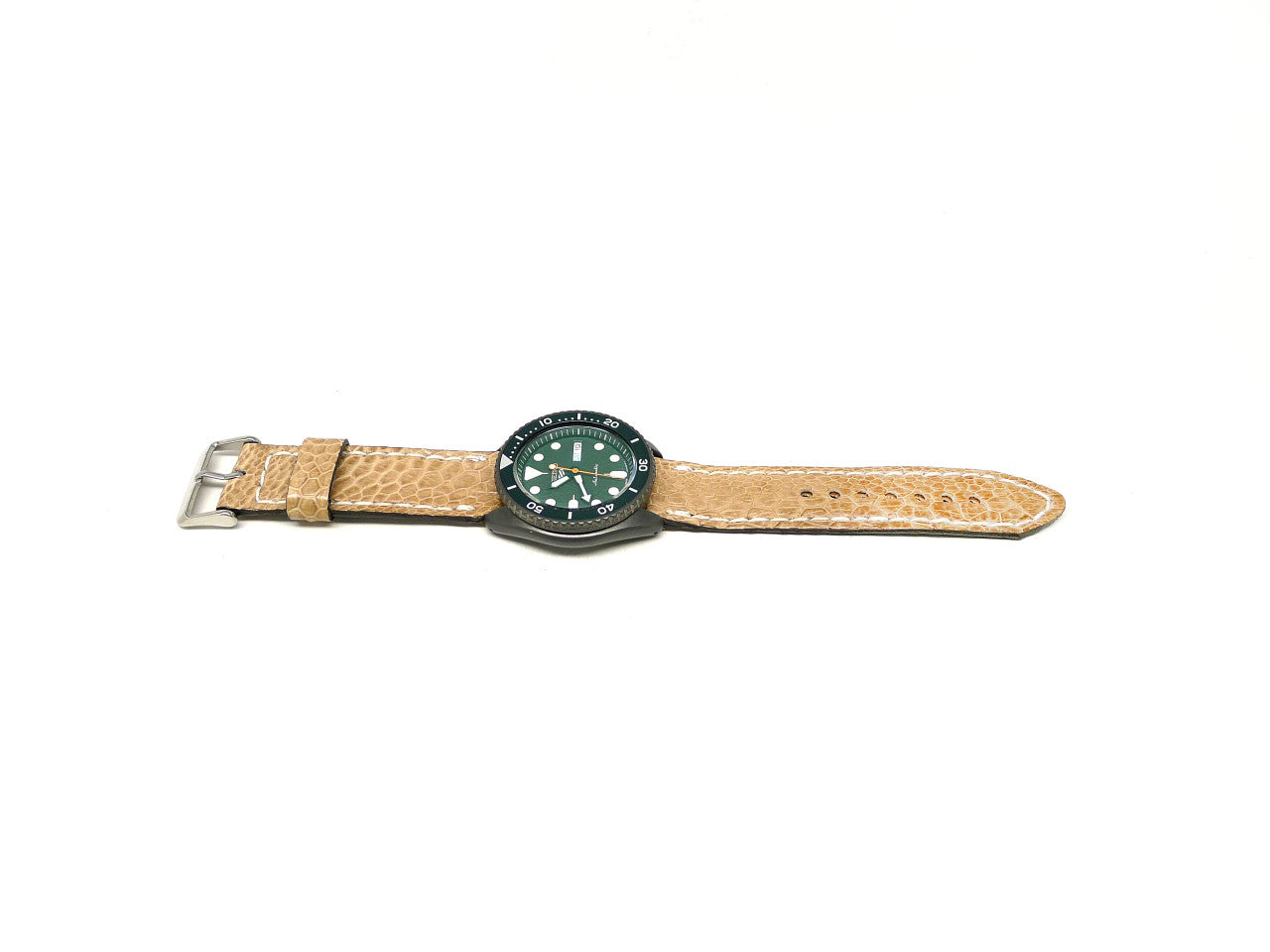 • Description: This one of a kind, individually named watch strap is handmade from some of the finest genuine ostrich skins available and is paired with a finely finished stainless steel buckle, that is guaranteed to enhance your watch. We hand stitch every strap using the strongest wax linen thread for added durability, use precise finishing techniques and give meticulous attention to detail so each strap is built to last using only the finest materials available. Enhance your watch with this luxurious handmade ostrich watch strap, it will give years of all-day comfort and style.
