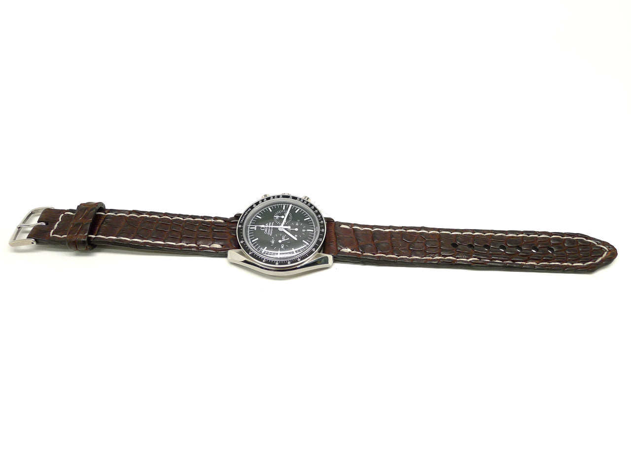 • Description: This one of a kind, individually named watch strap is handmade from some of the finest genuine alligator skins available and is paired with a finely finished stainless steel buckle, that is guaranteed to enhance your watch. We hand stitch every strap using the strongest wax linen thread for added durability, use precise finishing techniques and give meticulous attention to detail so each strap is built to last using only the finest materials available. Enhance your watch with this luxurious handmade alligator watch strap, it will give years of all-day comfort and style.