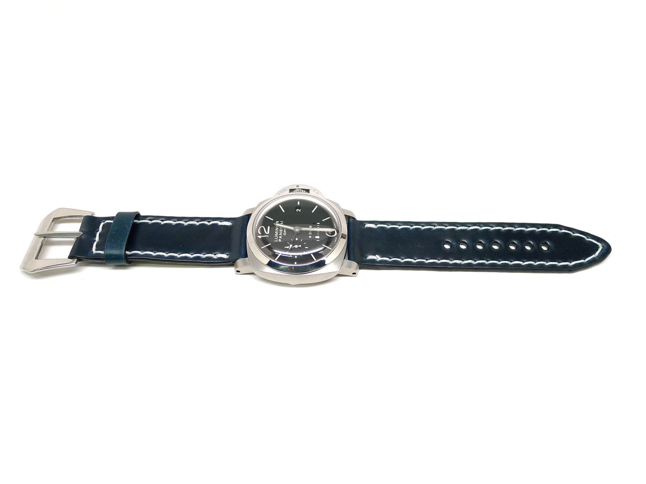 • Description: This one of a kind, individually named watch strap is handmade from genuine Navy Horween Shell Cordovan leather and is paired with a finely finished stainless steel buckle, that is guaranteed to enhance your watch. Shell Cordovan is the art of tanning at its finest, taking irregular oval shaped shells and tanning, stuffing, shaving, then polishing – a process taking at least six months to complete at the world famous Horween tannery in Chicago, IL. This intense process gives the leather its unique properties that make it like no other. The results yield some of the finest leather known to man. You simply cannot find better leather! That same care, quality and attention to detail is clear throughout each strap as we mirror their attention to detail in each watch strap we produce. We hand stitch every strap using the strongest wax linen thread for added durability, use precise finishing techniques and give meticulous attention to detail so each strap is built to last using only the finest materials available. Enhance your watch with this luxurious shell cordovan leather watch strap, it will give years of all-day comfort and style.