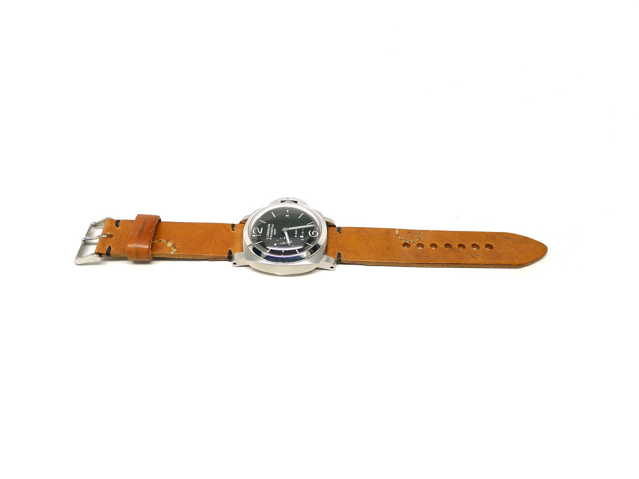 • Description: This one of a kind, individually named watch strap is handmade from some of the rarest and most sought-after vintage Swiss ammunition pouches available, that date back from the early 1900s to the late 1960s. We pair this ultra-tough military grade leather with a finely finished stainless steel buckle to create an exceptional quality watch strap that is guaranteed to enhance your watch as well as be a statement piece for your wrist. Every nuanced detail, hole, crease mark, scratch, stitching line or stamp is purposefully presented as each watch strap is truly a one of a kind limited edition masterpiece. We hand stitch every strap using the strongest wax linen thread for added durability, use precise finishing techniques and give meticulous attention to detail so each strap is built to last using only the finest materials available. Enhance your watch with this luxurious handmade vintage leather watch strap, it will give years of all-day comfort and style.