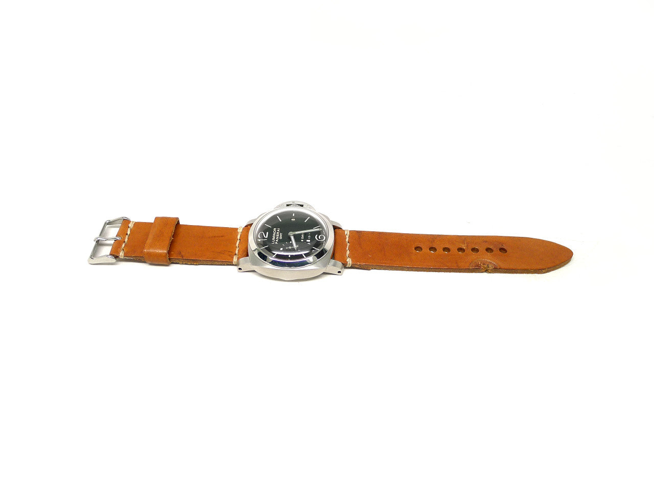 • Description: This one of a kind, individually named watch strap is handmade from some of the rarest and most sought-after vintage Swiss ammunition pouches available, that date back from the early 1900s to the late 1960s. We pair this ultra-tough military grade leather with a finely finished stainless steel buckle to create an exceptional quality watch strap that is guaranteed to enhance your watch as well as be a statement piece for your wrist. Every nuanced detail, hole, crease mark, scratch, stitching line or stamp is purposefully presented as each watch strap is truly a one of a kind limited edition masterpiece. We hand stitch every strap using the strongest wax linen thread for added durability, use precise finishing techniques and give meticulous attention to detail so each strap is built to last using only the finest materials available. Enhance your watch with this luxurious handmade vintage leather watch strap, it will give years of all-day comfort and style.